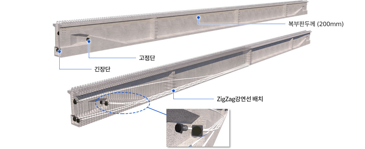 하단부 강연선의 ZigZag 배치를 통한 압축응력 감소 유도